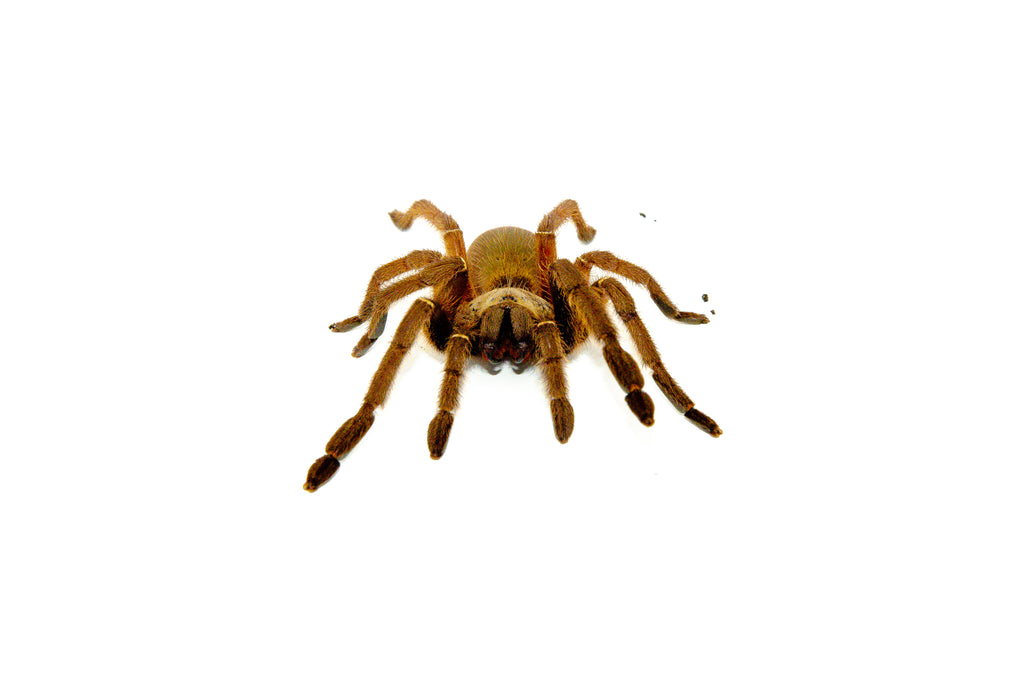 - Description: The mesmerizing Emerald Skeleton Leg Tarantula is very defensive and is generally an olive to khaki color with white striped joints. These tarantulas are very skittish and are primarily known for their exceptional web tunneling capabilities that alert them of nearby prey.