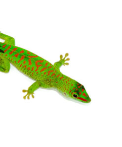 - These vibrantly colored Day Geckos are ideal for those looking for a reptile pet that’s active during the day. They’re also excellent climbers and will cling on to a range of walls and surfaces. They’re delicate in nature, but if you have prior-reptile experience, they’ll make an excellent addition to your household. They have an electric green appearance that is highlighted with blotches of shimmering red all over their body.